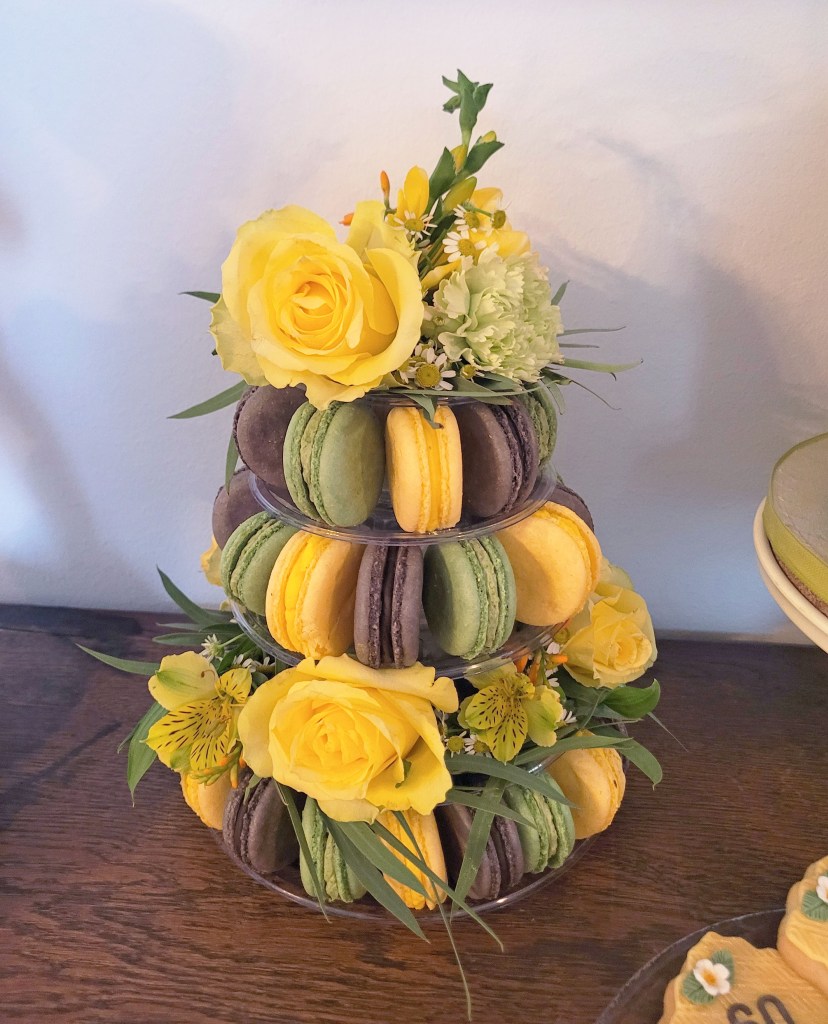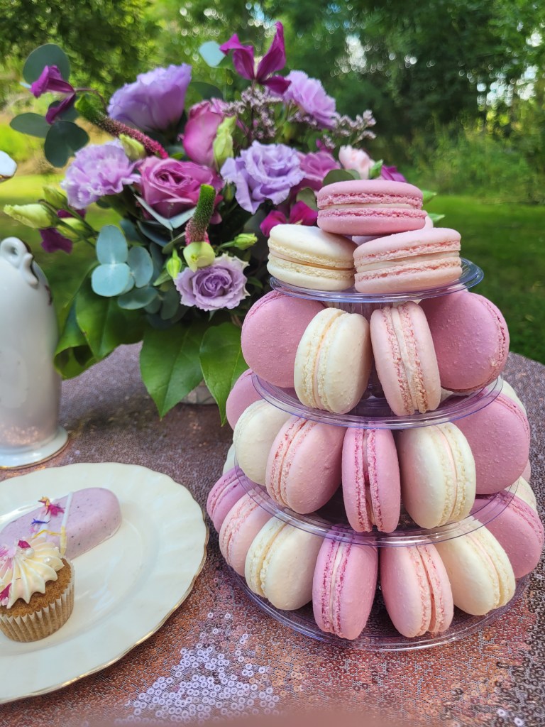 Macaronit voidaan valmistaa juhlien väriteeman mukaan ja koristella maaliroiskeilla tai suklaaraidoilla, mutta kaunis leivos on näyttävä sellaisenaankin.